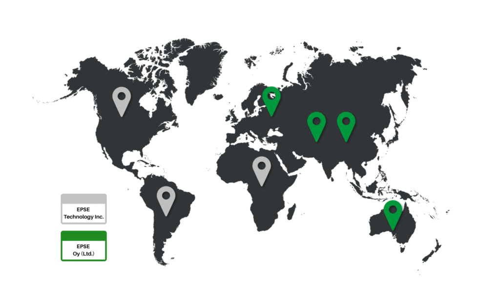 EPSE’s headquarters & Lab Hub are located in Pirkanmaa region, Finland. EPSE’s laboratory is the center of technology innovation and sample testing, and most EPSE employees work in Finland. EPSE Teams’ international operatives and the Technical Team specialized in piloting enable new projects all around the world. Our trusted partners are located around the world to ensure easy access to our expertise.