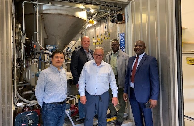 Artikkelin kuvassa EPSEn toimitusjohtaja Jouni Jääskeläinen, Solution Manager Tapio, Mining Finland ry:n toimitusjohtaja Harry Sandström sekä kaivosalan delegaatio Afrikasta.